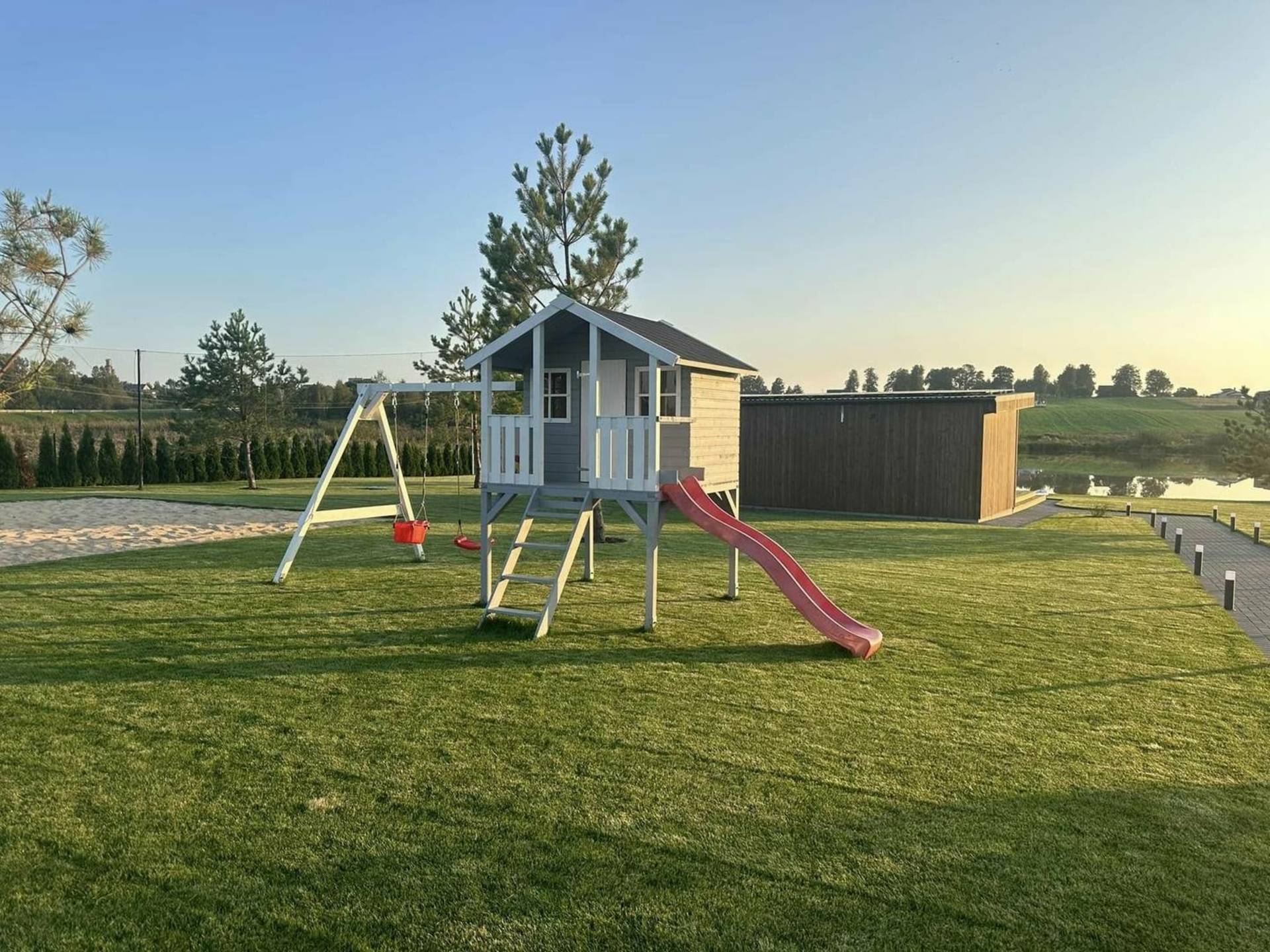 Prie namelių rasite tinklinio aikštelę, kurioje galėsite aktyviai leisti laisvalaikį.Taip pat papildomai galima užsisakyti pirtelę, kurioje įrengta druskų siena bei kaitrą suteikia Žadeito akmenys.
