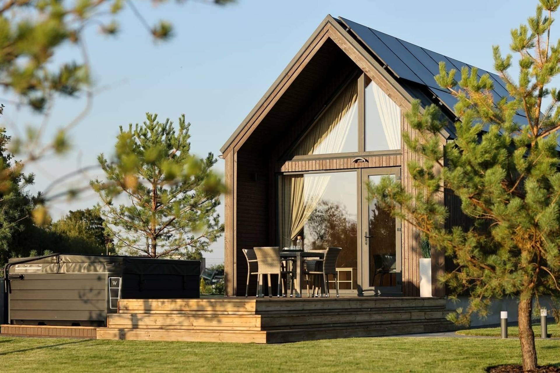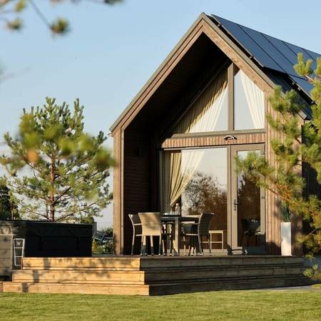 Šie nameliai įrengti taip, kad Jums rūpintis daugiau niekuo nebereikėtų. Juose yra dvigulė lova, išskleidžiama sofa, televizorius, privatus WC bei dušas, rankšluosčiai, kondicionierius bei šildymas. Mini virtuvėlėje rasite šaldytuvą, viryklę, visus gaminimui reikalingus indus bei įrankius. Mėgautis maistu galėsite tiek viduje, tiek ir šalia esančioje erdvioje terasoje. Kad vakarai būtų dar jaukesni maistą ruošti galėsite kamado bono kepsninėje, esančioje šalia terasos.