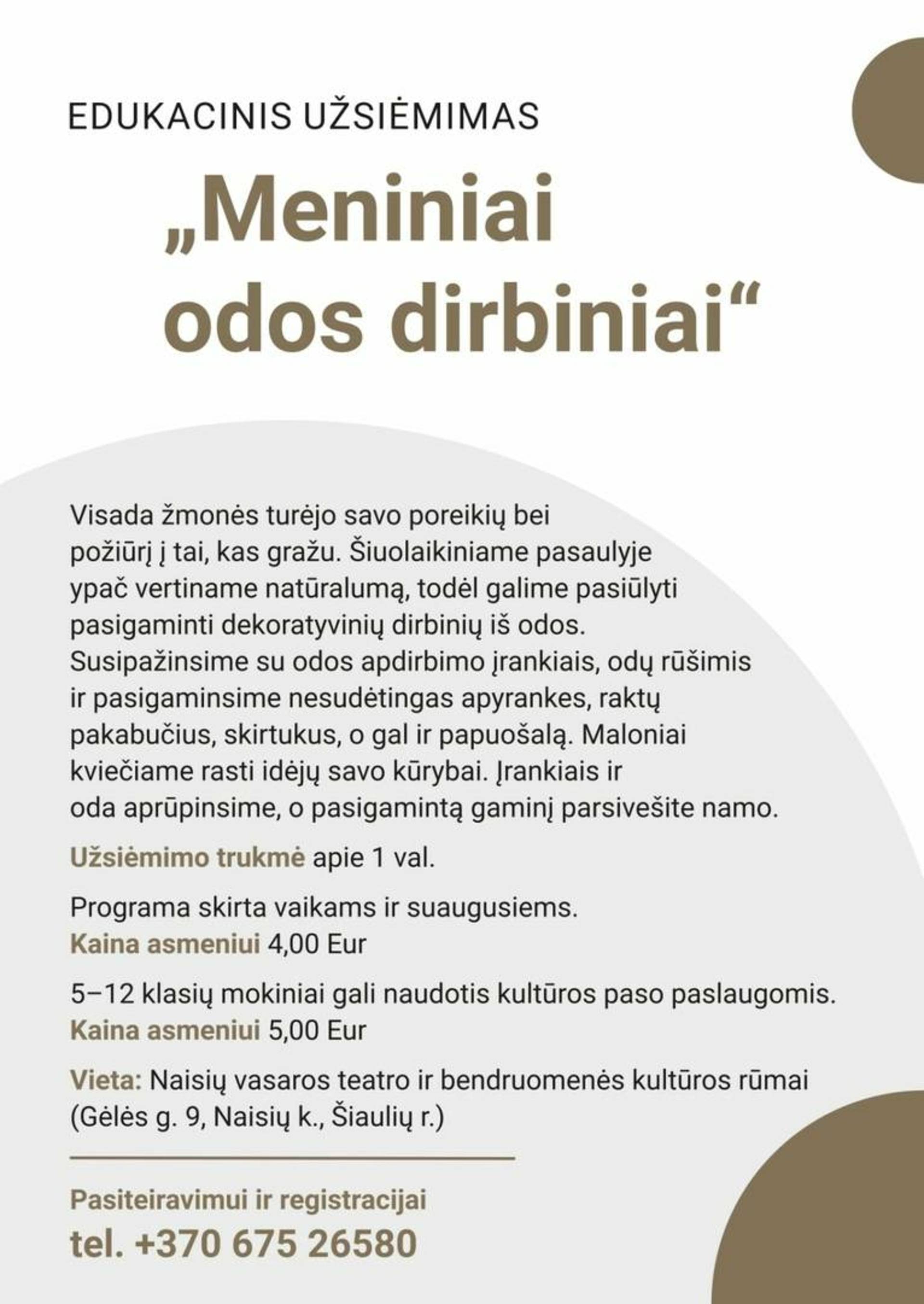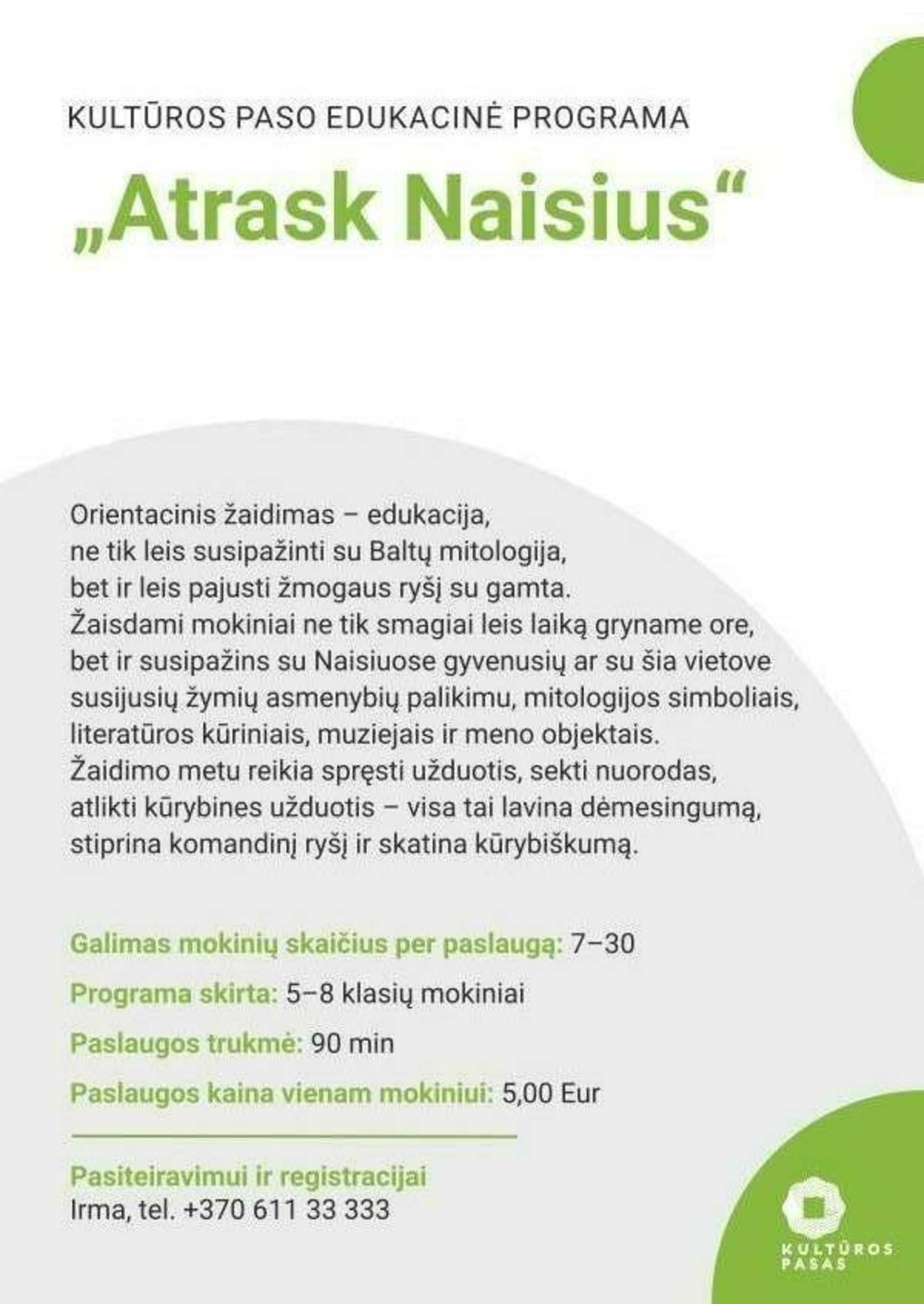 Kviečiame ir didelius ir mažus į edukacinius užsiėmimus Naisiuose!