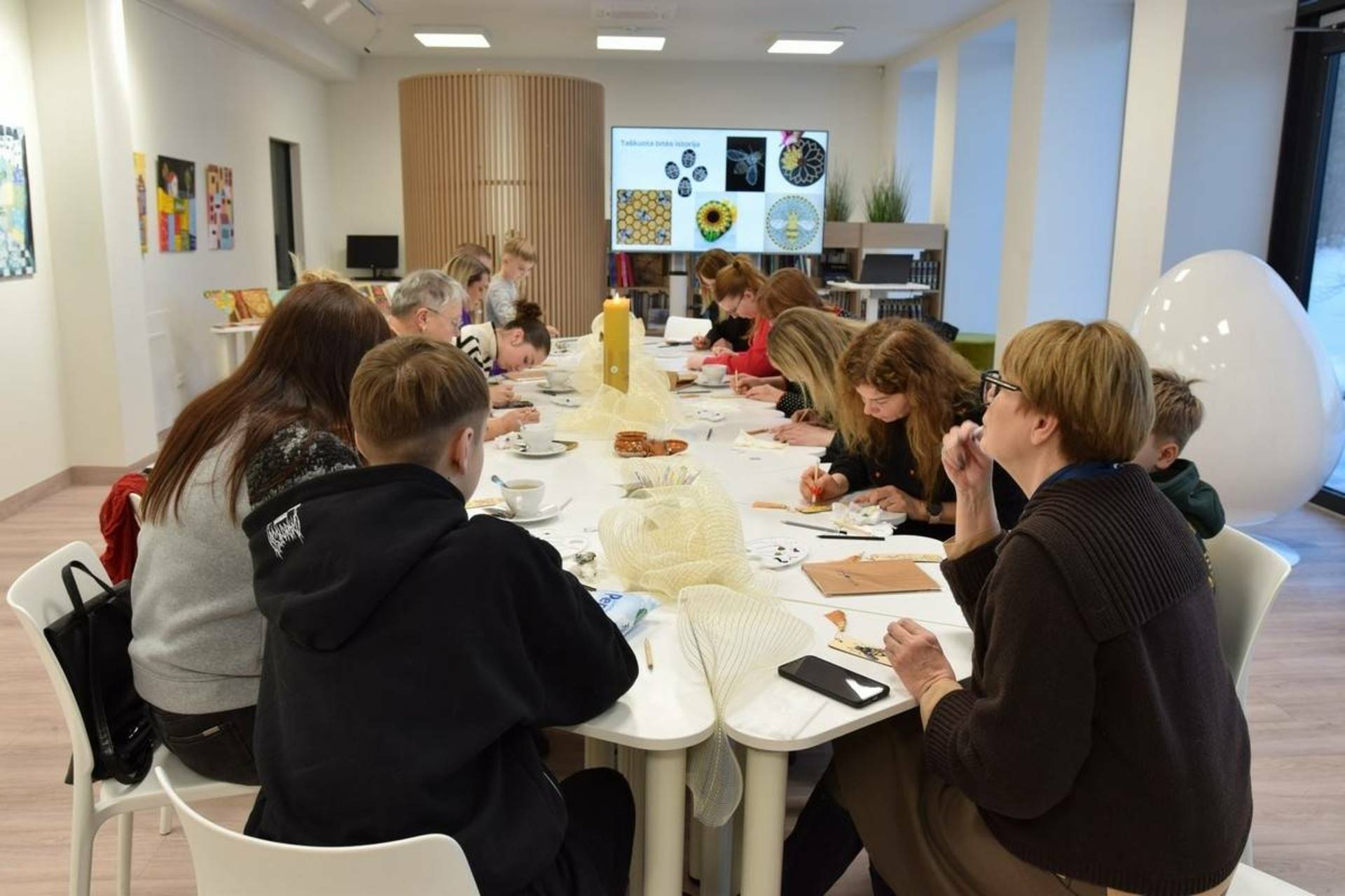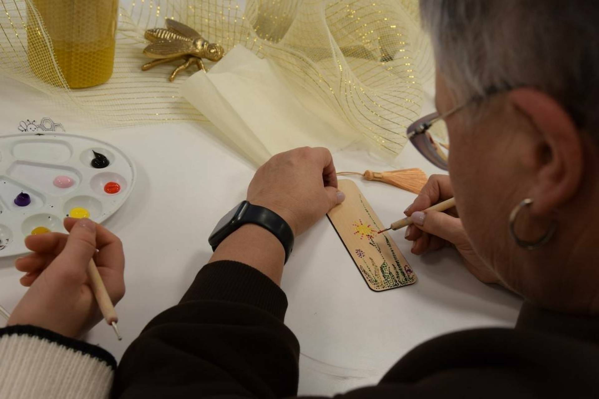 Po teorinio pristatymo dalyviai patys išbandė taškavimo techniką – dekoravo knygų skirtukus pasirinktais bičių motyvais. Kūrybinis procesas ne tik lavino kantrybę ir dėmesingumą detalėms, bet ir leido kiekvienam sukurti unikalų, asmeninį kūrinį.