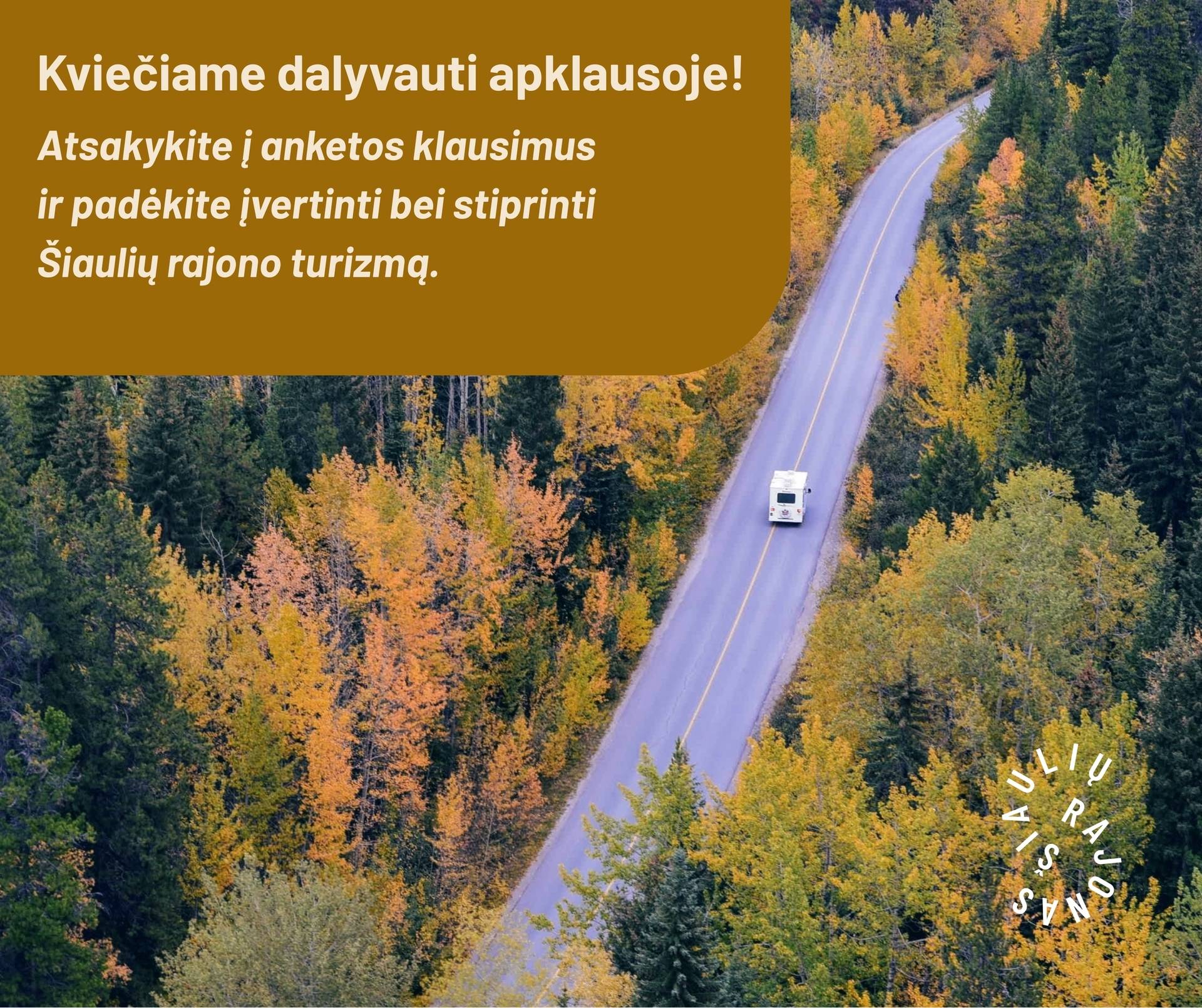 Šiaulių rajono savivaldybės administracijai svarbu sužinoti, kaip gyventojai ir rajone apsilankantys svečiai vertina turizmo aplinką. Jūsų nuomonė padeda tiksliau suprasti poreikius ir planuoti sprendimus, kurie prisidėtų prie patrauklesnės turizmo pasiūlos.