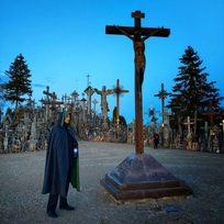 Kryžių kalno pasakotojas-vienuolis kviečia pajusti naktinio Kryžių kalno dvasią, išgirsti jo garsus ir pasakojimus.