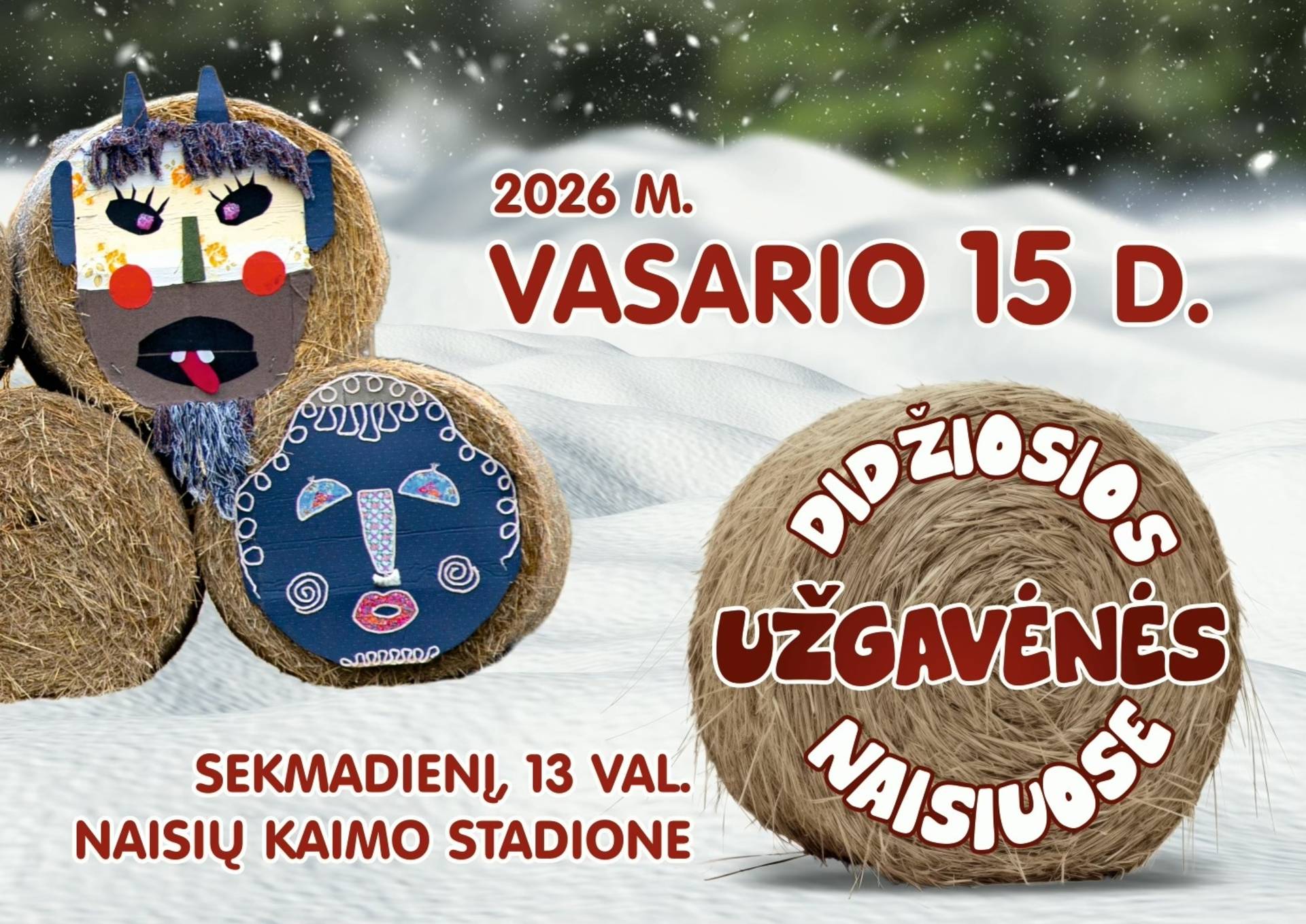 Vasario 15 d. į Naisius kviečia tradicinės Didžiosios Užgavėnės! Linksmai vysime žiemą lauk su geriausiais muzikantais, linksmiausiais žaidimais ir prašmatniausia muge!