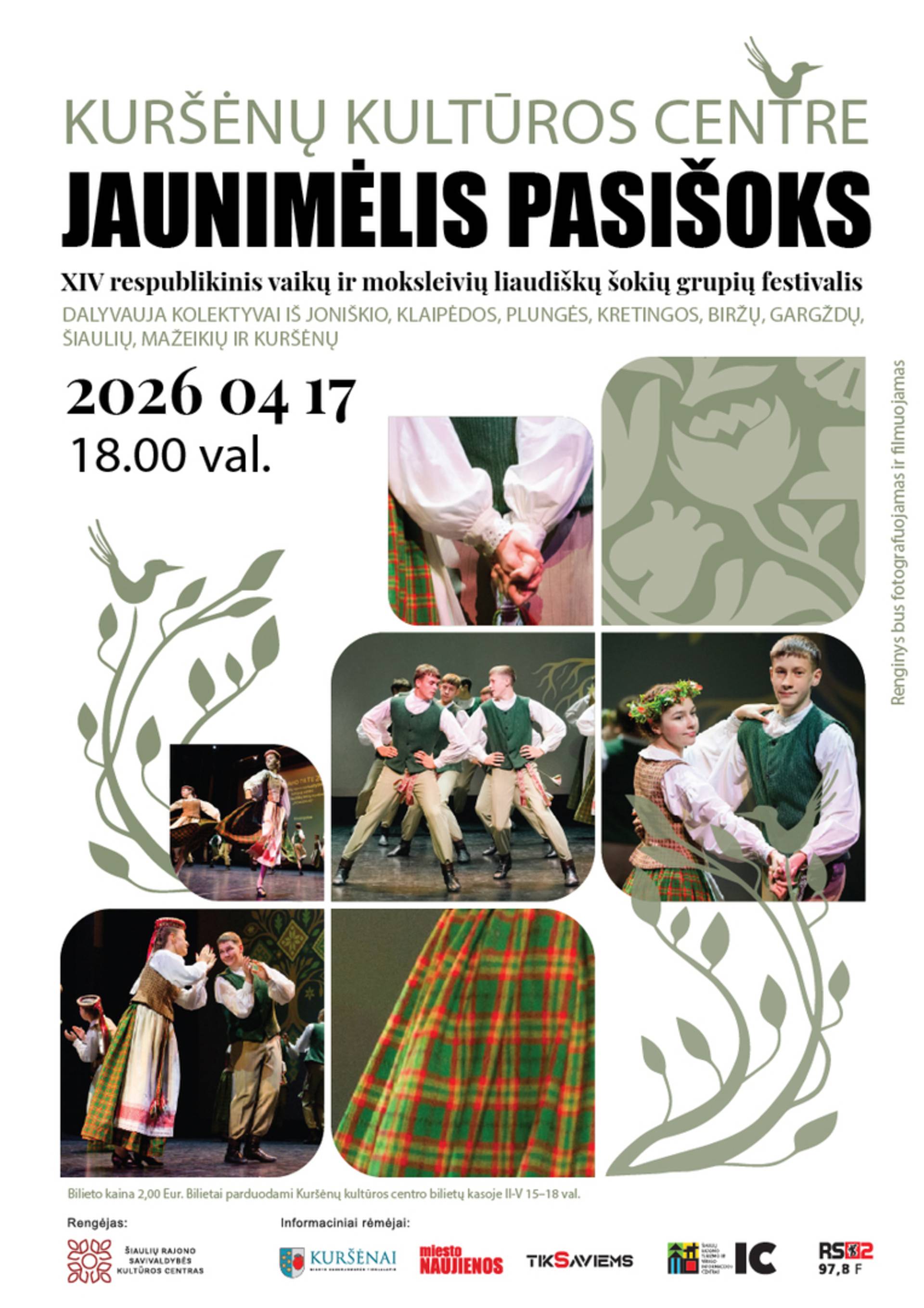 Bilietai parduodami Kuršėnų kultūros centro bilietų kasoje II-V 15–18 val.