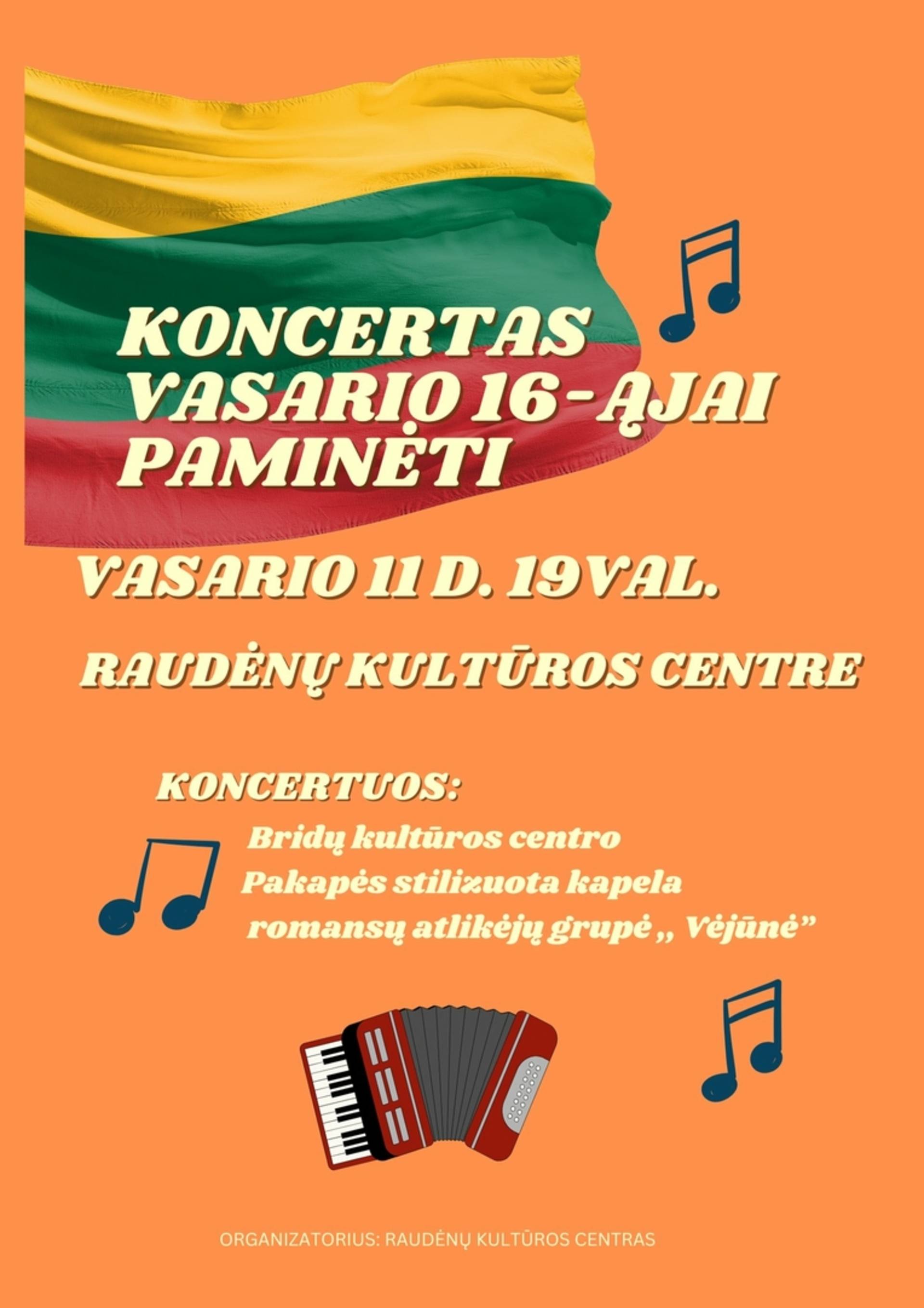 Koncertas Vasario 16-ąjai paminėti Raudėnų kultūros centre