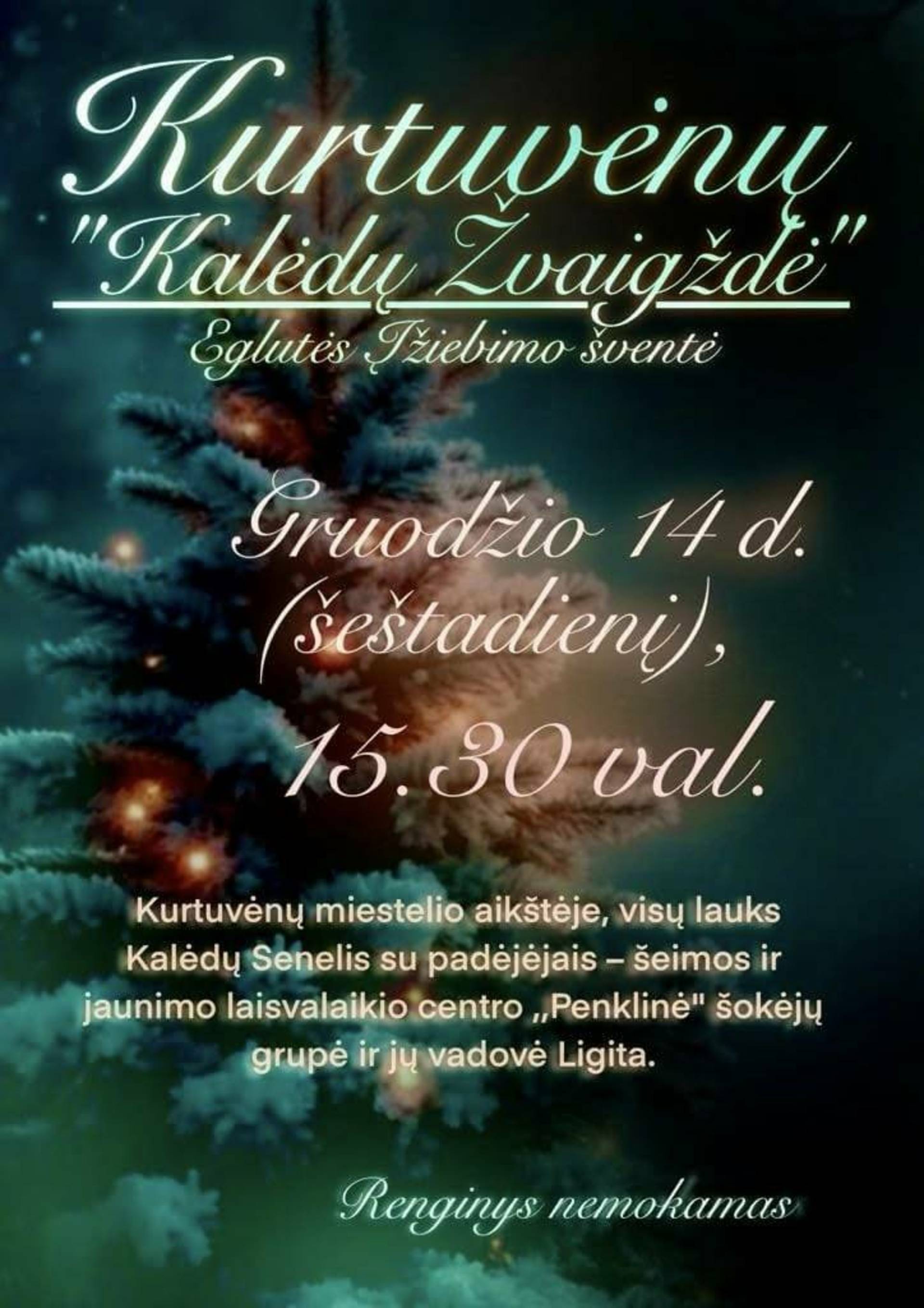 Kurtuvėnų miestelio aikštėje laukiami visi - dideli ir maži, kartu įžiebti miestelio Kalėdų eglutę ! Visų lauks Kalėdų Senelis su padėjėjais !