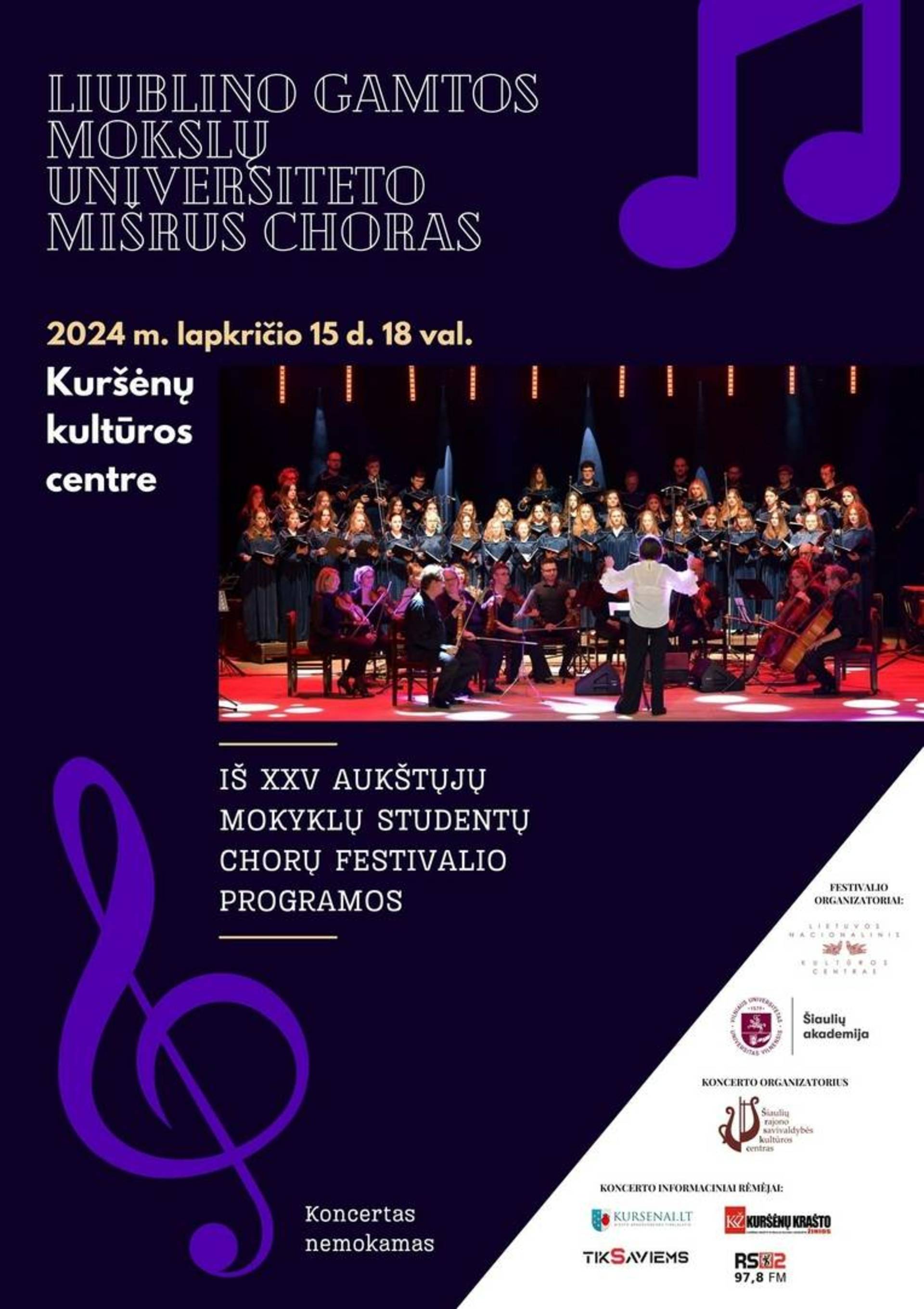 Liublino gamtos mokslų universiteto mišraus choro koncertas Kuršėnų kultūros centre. Iš XXV aukštųjų mokyklų studentų chorų festivalio programos.