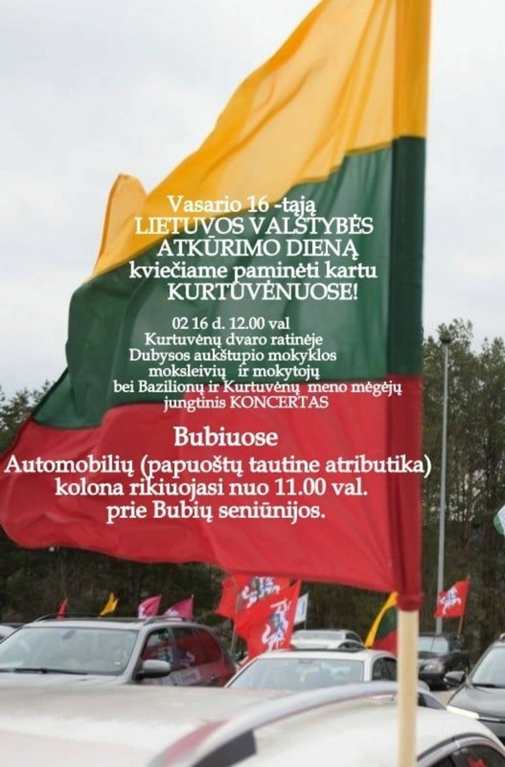 Šventiniai automobilių žygiai iš Bazilionų, Bubių, Gilvyčių, Kurtuvėnų į Kurtuvėnų miestelio aikštę. KONCERTAS